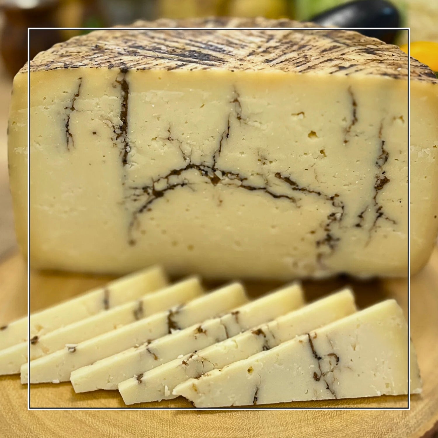 Caciotta with truffle is a semi-soft Italian cheese infused with the rich, earthy flavor of truffles. Originating from central Italy, this variation with truffles, creating a unique and aromatic taste. The cheese has a soft, creamy texture that complements the truffle's bold profile. Its luxurious taste makes Caciotta with truffle perfect for special occasions, enjoyed on its own or paired with simple accompaniments like bread and wine.